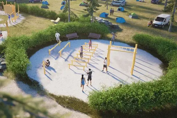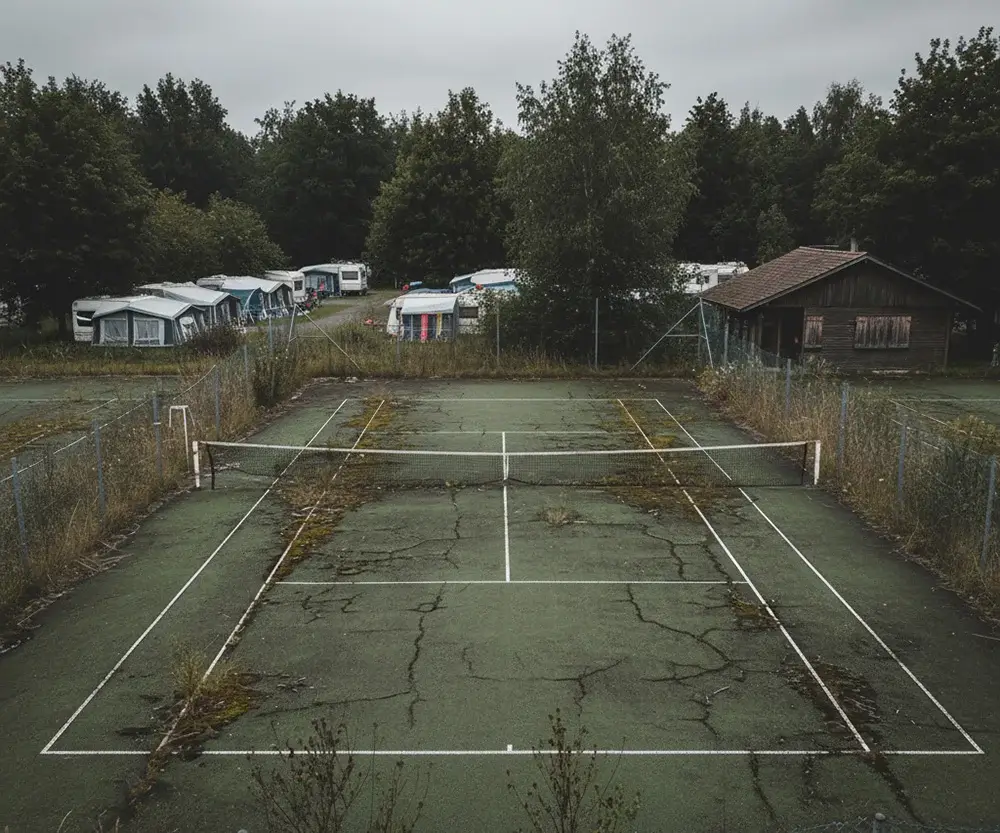 Viele Camping-Anlagen verfügen immer noch über große Tennisplätze, die heute kaum oder gar nicht mehr genutzt werden. In solchen Fällen ist es ein Leichtes ausreichend große, abwechslungsreiche Spielplätze für die jungen Gäste zu schaffen. Aber auch Outdoor-Fitnessanlagen können hier mit wenig Aufwand entstehen.