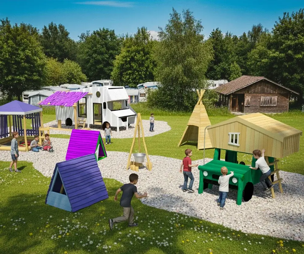 Hochwertige Naturholz-Spielgeräte für Campingplätze & Co.